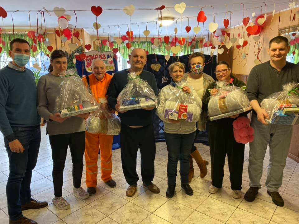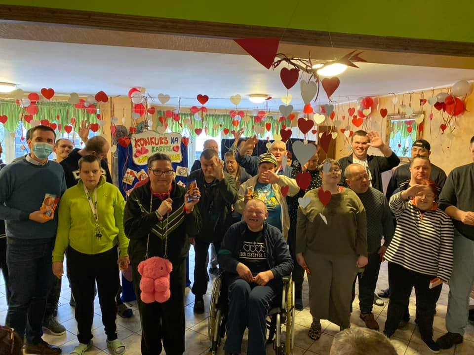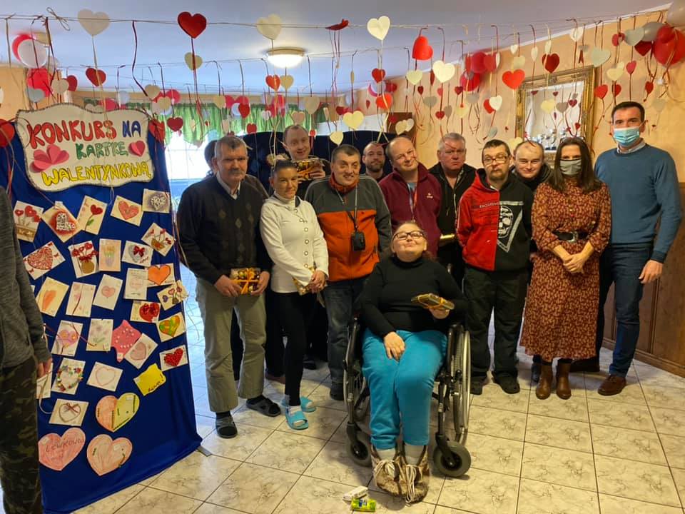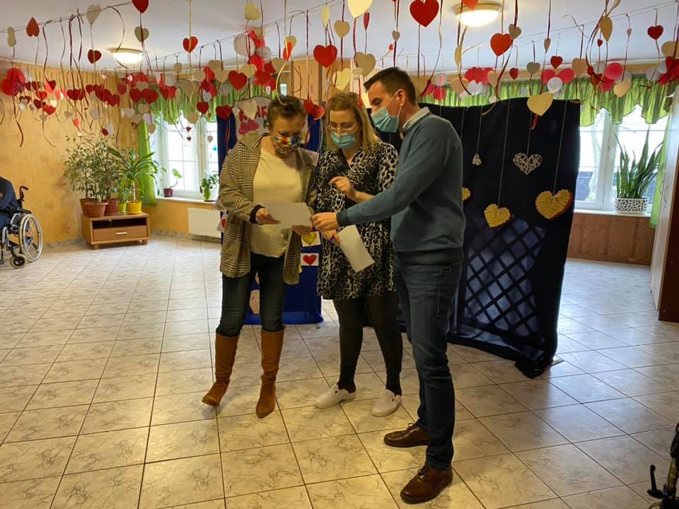 Dziś nastrój Walentynek uświetniała audycja radiowa pt.: ,,Walentynkowe Love”, prowadzona przez Mieszkańców z pomocą Instruktora Terapii Zajęciowej – w naszym domowym Radiowęźle, podczas której przypominaliśmy zapomniane piosenki o miłości oraz recytowaliśmy wiersze twórczości: Bolesława Leśmiana, Konstantego Ildefonsa Gałczyńskiego czy też Wisławy Szymborskiej. Po południu odbyło się uroczyste rozstrzygnięcie Plebiscytu na Mieszkańca i Mieszkankę 2020 Roku – Mieszkańcy zostali nagrodzeni za szczególne zaangażowanie w pracę na rzecz Domu i wzorowe postawy koleżeńskie oraz podsumowanie i ogłoszenie wyników Konkursu na najpiękniejsza kartkę walentynkową. W Konkursie udział wzięły 33 osoby. Nagrody rzeczowe, słodkie upominki oraz serdeczne życzenia dalszych osiągnięć, naszym Mieszkańcom przekazali – Dyrektor Domu Pani Joanna Maria Siemiątkowska oraz Wicedyrektor Pan Adam Pawłowski.